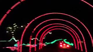 Taken from a slow moving car in the Dinosaur section of the Lake Vasona Park Fantasy Of Lights Christmas light show. The radio is tuned to the park\'s station ...